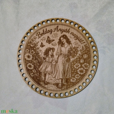 DIY horgolható fa alap – Anyák napi virágos mintás korong, több méretben