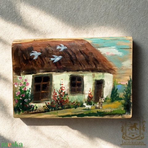 Nagymamánál - Rusztikus Fatábla, Ajándék ötlet - Egyedi Falidísz, Gyerekszoba, Cica, Kutya, Madár, Ház, Virág