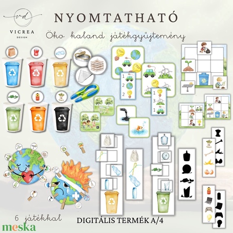 🌍 Nyomtatható Öko kaland játékgyűjtemény – környezetvédelem játékosan (4–7 éveseknek) (digitális pdf)