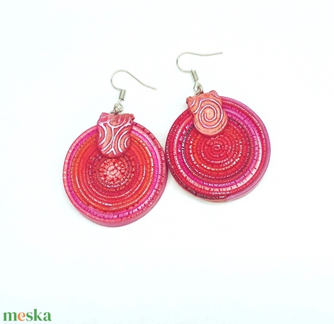 Rusztikus pink-piros fülbevaló1