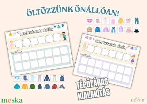 Öltöztetős tábla gyerekeknek – egyedi, névre szóló fejlesztő játék 28 elemmel
