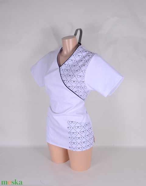 "S" szemüveg mintás tunika egészségügyi/óvónői/szépségipari munkaruha