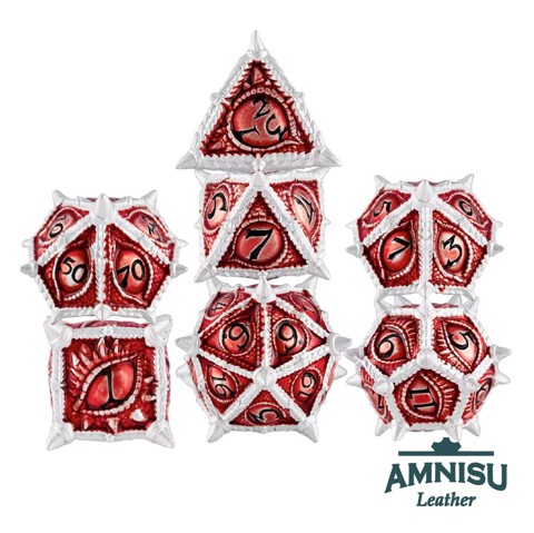 Piros - ezüst sárkányszemes fém kockaszett