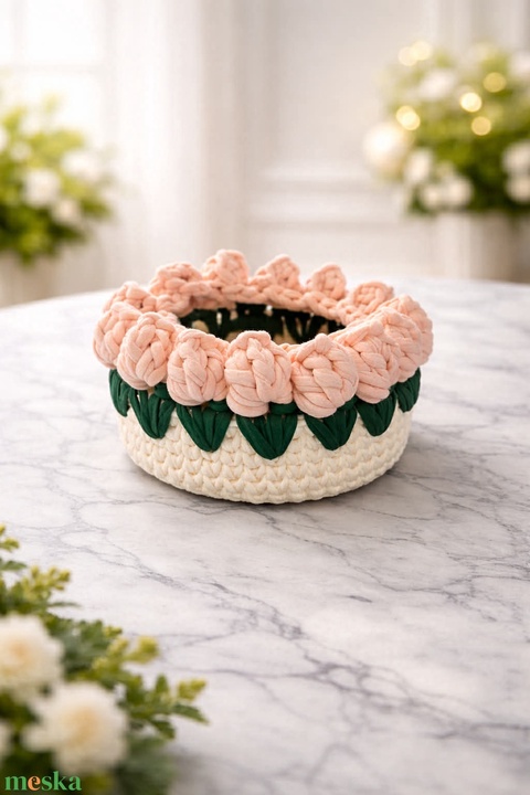 Barack tulipános horgolt kosár