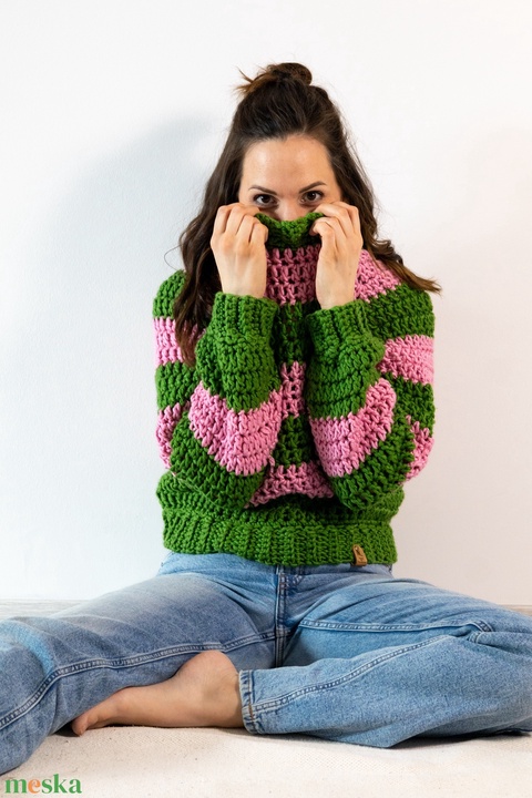 Horgolt csíkos pulóver