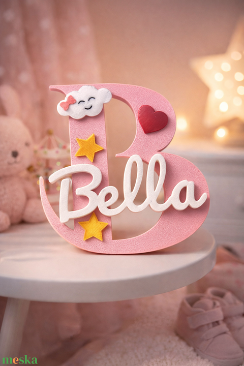 3D névtábla gyerekszobába, egyedi név + monogram, falra vagy polcra, babaszoba dekor