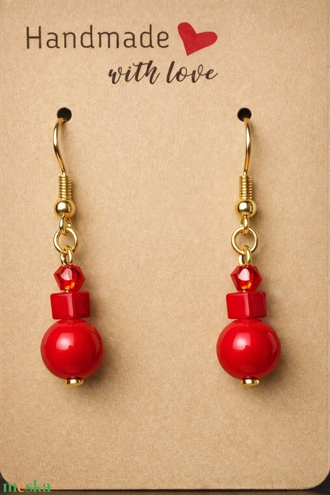 Piros jáde fülbevaló 7 cm