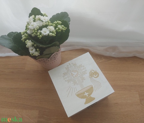 Elsőáldozási emlék fadoboz - dekopage