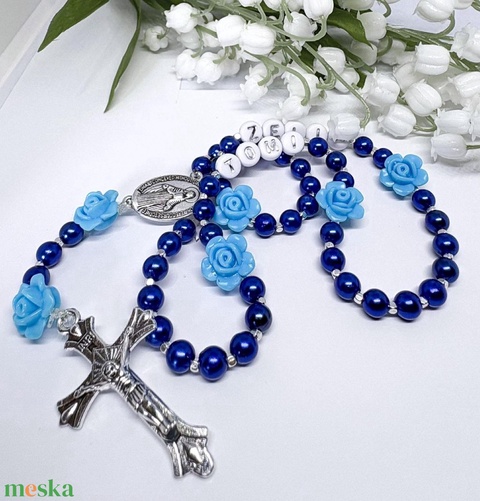 Egyedi gyöngyös rózsafüzér – kék névreszóló