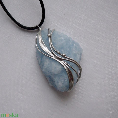 A medál Tiffany technikával készült nyers kalcit és ólommentes, ezüsttartalmú ón felhasználásával. A díszítés szintén saját készítésű, nem tartalmaz gyári elemeket. A fémrészt óezüstre patináztam és lelakkoztam, hogy sokáig szép maradjon.