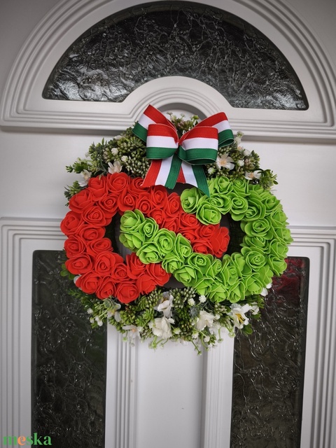TISZA-stílusú nemzeti színű ajtódísz – Végtelen jel alakú habrózsa kopogtató