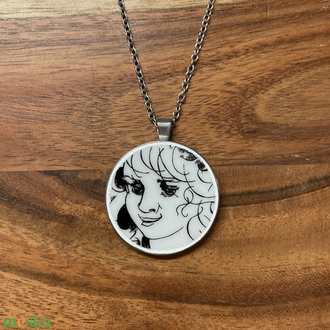 Mentett porcelán darabok - lány arc medálos nyaklánc - nemesacél