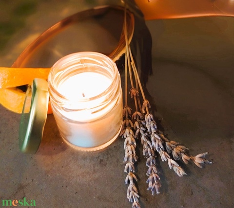 - Anyag/Összetevő szójaviasz, levendula illóolaj, vanília illóolaj, édesnarancs illóolaj