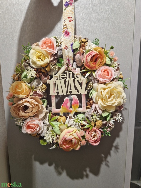 Ajtódísz, kopogtató, tavaszi virágkoszorú