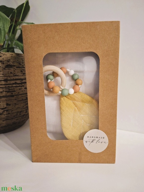 Baby Box - babaváró ajándékcsomag - tetra pelus - szilikonos -fa karikás, textil leveles rágóka