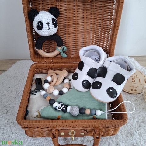 Pandás babaváró ajándékcsomag kisfiúnak bőröndben