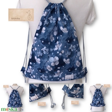 Cseresznyefavirág mintás, VÍZÁLLÓ gymbag hátizsák farmerkék színben