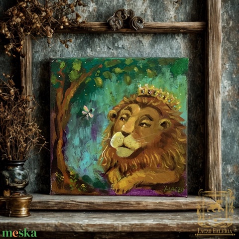 Oroszlán és pillangó - Eredeti Akril Festmény Vásznon (Laczó Ágnes kortárs festő/grafikus művész