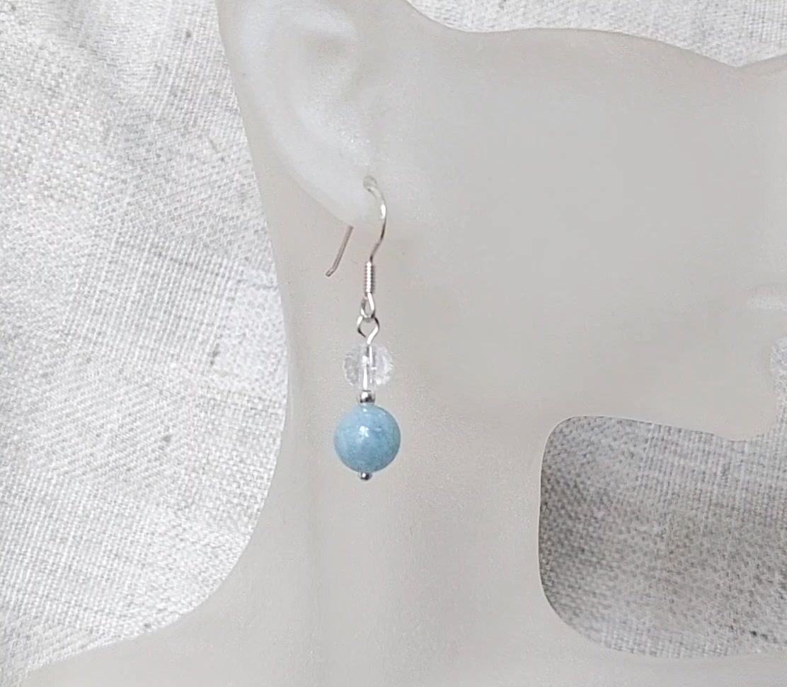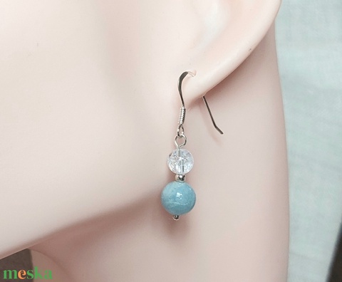 Sterling ezüst fülbevaló akvamarin és hegyikristály ásványokkal
