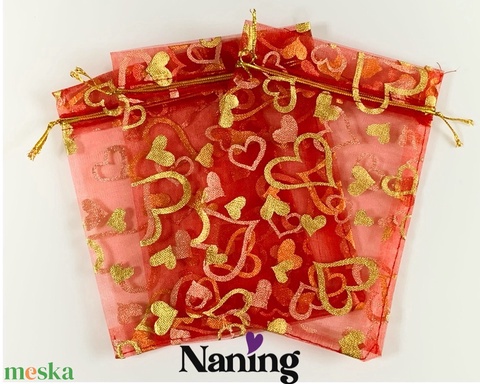 10db - ORGANZA - ajándéktasak/ékszertasak - 10x14cm. (80ft/db)