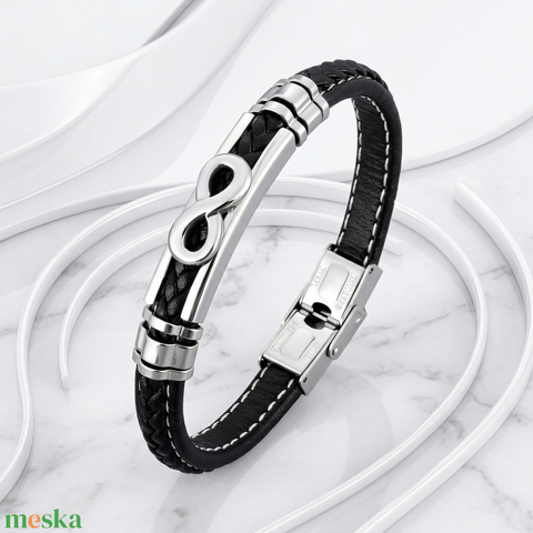 Végtelen Kapocs – fekete Fonott Bőr Karkötő