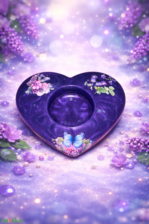 Lila szív alakú epoxi tea mécses gyertyatartó