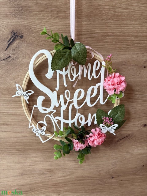 Tedd még meghittebbé az otthonod hangulatát ezzel a szeretettel készített „Édes otthon” feliratú ajtódísszel! 🏡