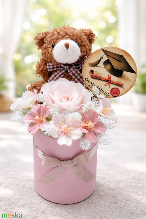 - Anyag/Összetevő művirág, plüss, kartondoboz