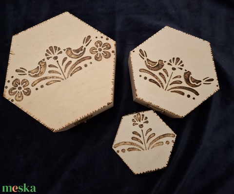 Lelkem Madarai” – 3 db-os, kézzel égetett népi motívumos fadoboz szett