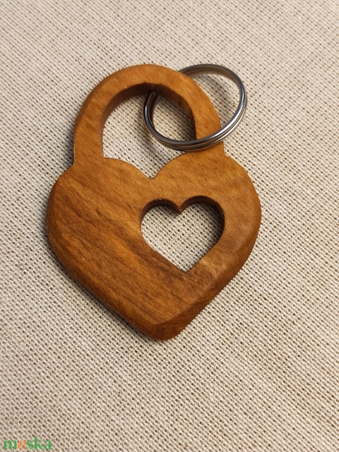 Szív Lakat Fa Kulcstartó – Prémium Nemesfa Ajándék Szerelmeseknek