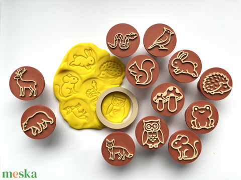 Őz, róka, bagoly, sündisznó, mókus, nyuszi, madár, medve, béka, gombák, kígyó és még több erdei motívum.Főbb előnyök:Részletes, élethű minták – szép, tiszta lenyomatot ad gyurmában és tésztában egyaránt