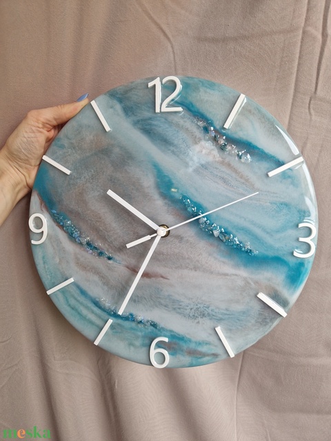 Türkiz epoxy óra ásványokkal