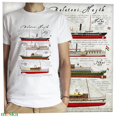 Balatoni hajók - Jó minőségű klasszikus férfi póló