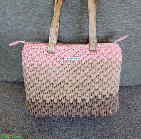 Női horgolt válltáska, rosegold pánttal