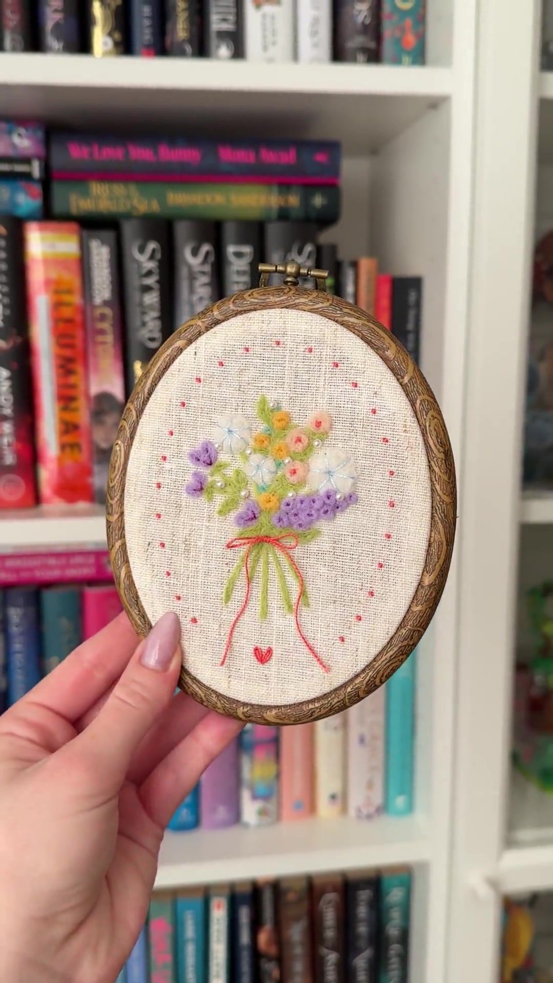 Kérés és felár ellenében egyedi hímzést is szívesen készítek, ilyenkor a fotón látható kör-hímzés helyett nevet, dátumot a csokor alatt, vagy felett tudok készíteni.