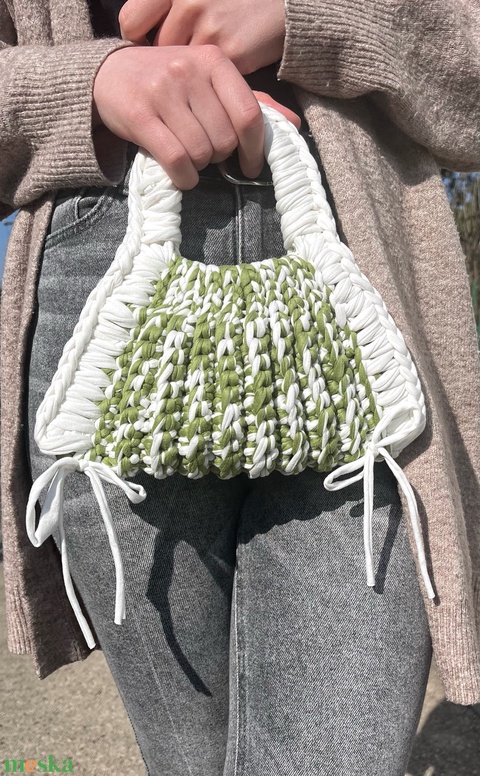 Horgolt mini kézitáska – olíva zöld kézműves női kistáska