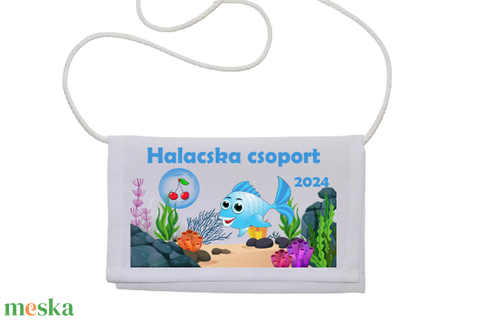 Óvodai és Bölcsődei tarisznya mérete: kb. 12×18 cm, a zsinór hossza kb. 90 cm.