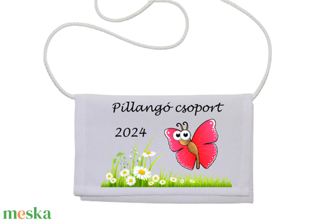 Óvodai és Bölcsődei tarisznya mérete: kb. 12×18 cm, a zsinór hossza kb. 90 cm.