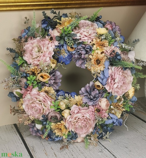 - Anyag/Összetevő selyemvirágok, műzöld, szalmakoszorú