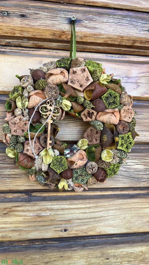 Barna-zöld ajtódísz, kopogtató