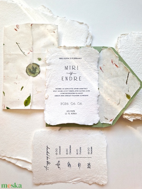 ESKÜVŐI MEGHÍVÓ, GREENERY, merített papíron
