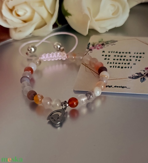 - Anyag/Összetevő microcord, pink botswana achát, nemesacél