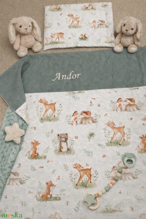 Baba / gyermekágynemű szett 2 részes HÍMZETT NEVES - Mackó és barátai
