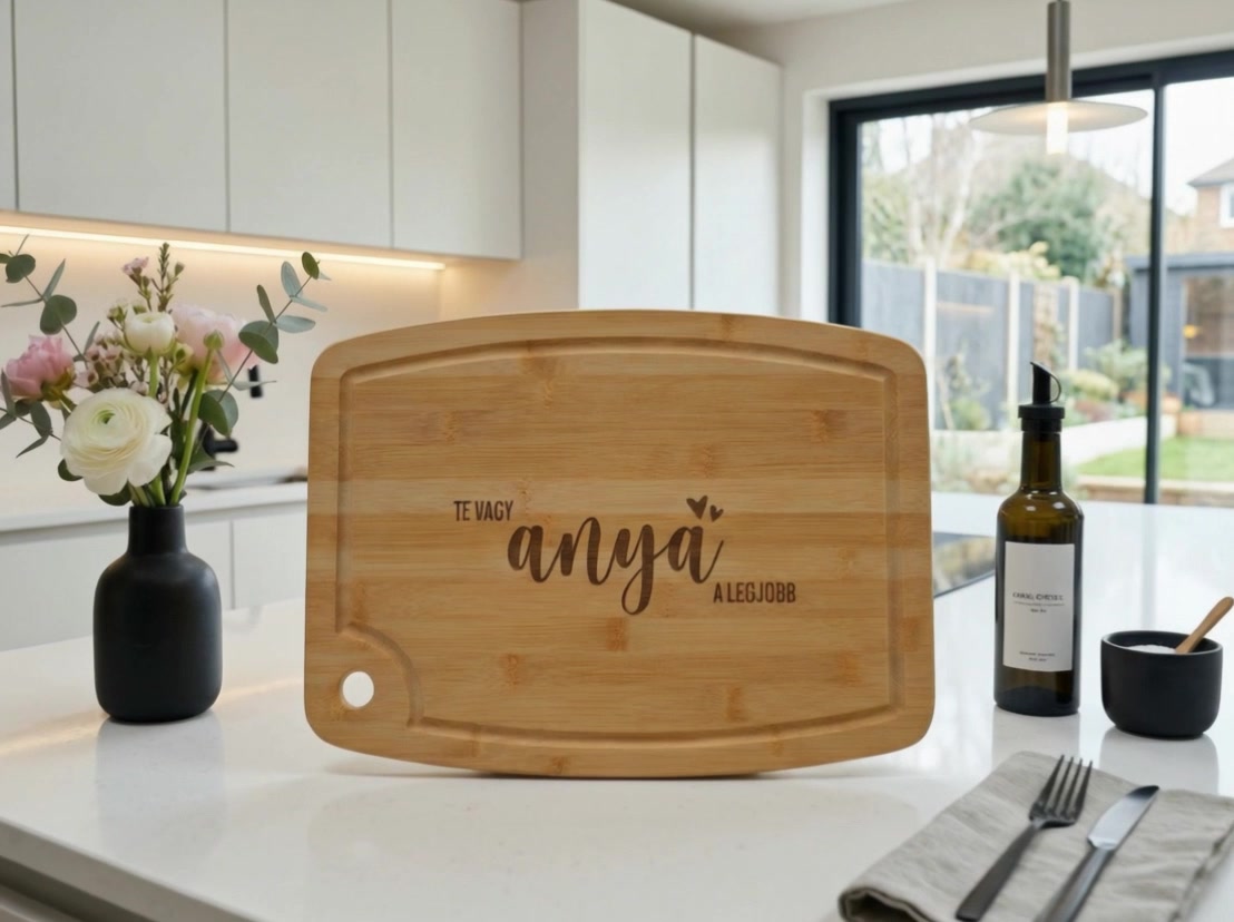 Gravírozott nagyméretű vágódeszka - anyák napi ajándék nagymamáknak, anyukáknak