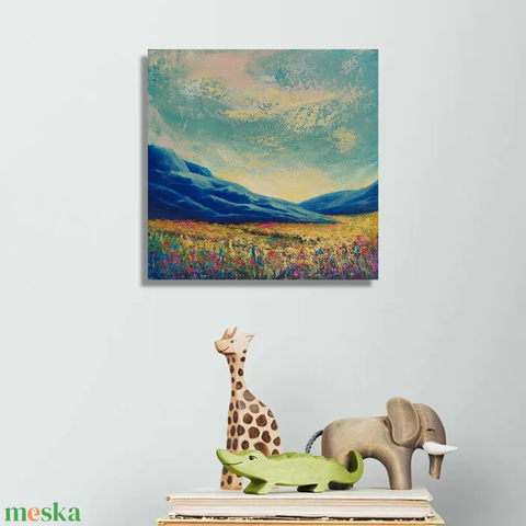 Titkos völgy - Eredeti, texturált, absztrakt tájkép, olajfestmény