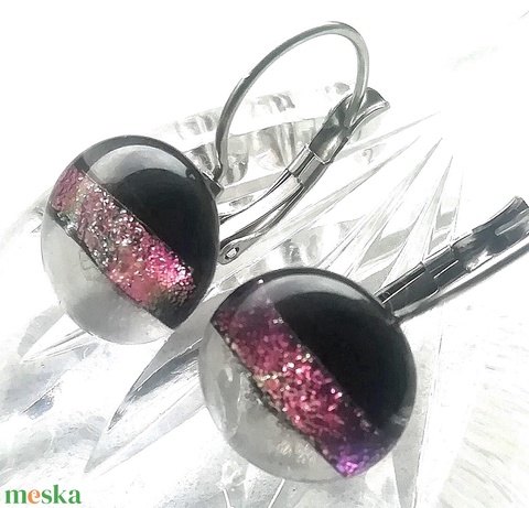 Fekete-rózsaszín szalagos kapcsos fülbevaló, ajándék nőknek névnapra, születésnapra.