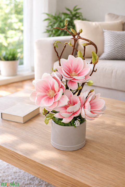 Rózsaszín élethű magnólia kerámia kaspóban