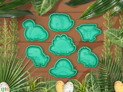 Ez a kedves és részletes aranyos dinoszauruszos készlet tökéletes arra, hogy dinós sütiket süss vagy gyurmával játssz. A készletben több cuki dinoszaurusz motívum található (T-Rex, Triceratops, Brachiosaurus stb.), barátságos, gyerekbarát stílusban.