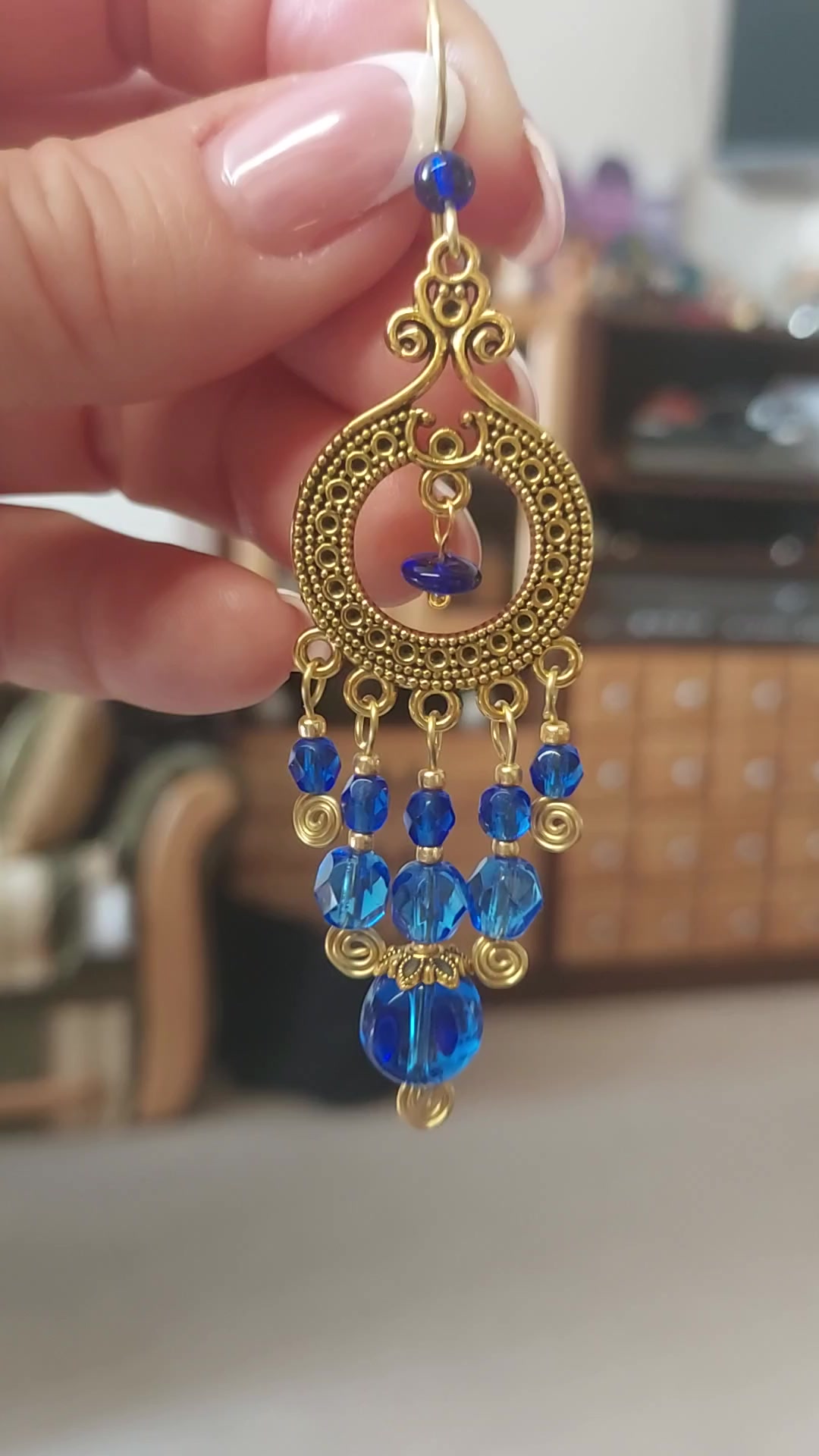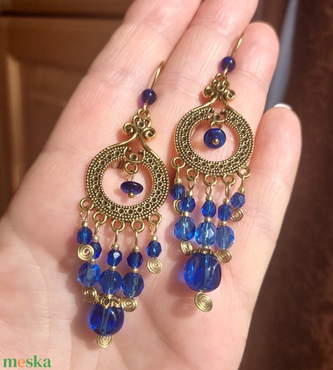Királykék-arany gyöngyfülbevaló