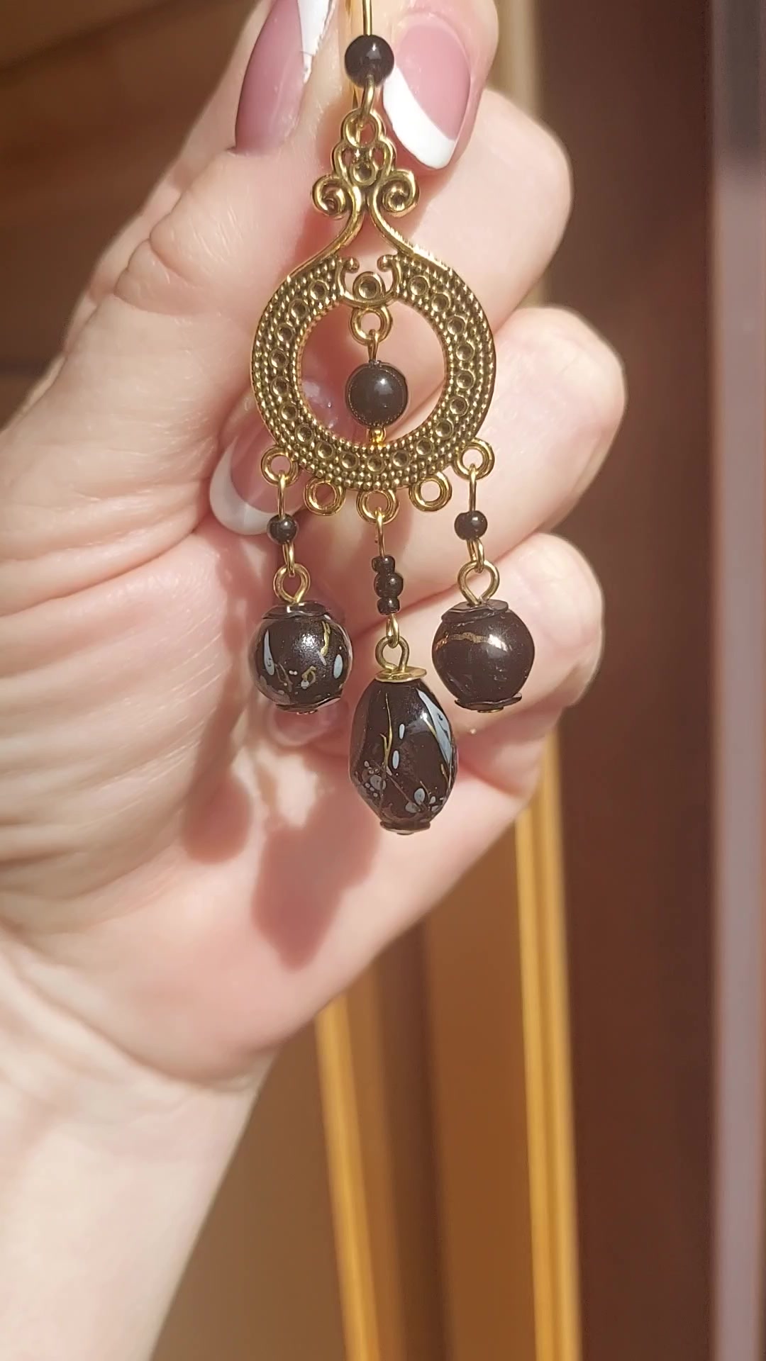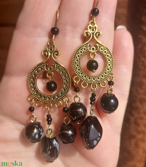 Fekete-arany gyöngyfülbevaló